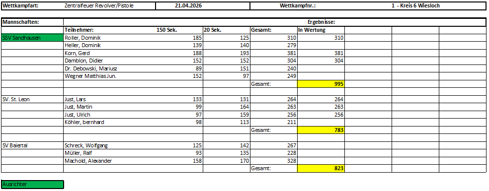 RWK Zentralfeuer Revolver/Pistole – Ergebnisse 2026